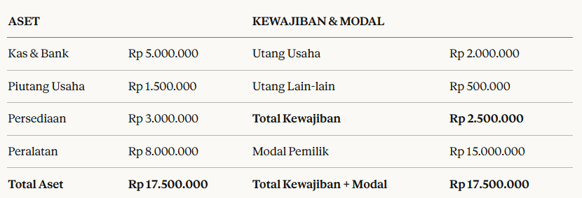 2. Contoh Laporan Posisi Keuangan (Neraca Sederhana)