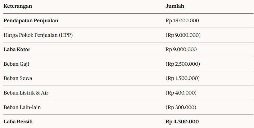 1. Laporan Laba Rugi: Menunjukkan apakah usaha untung atau rugi dalam satu periode