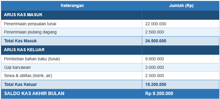Kenapa Kas Rp 9,2 Juta sedangkan Laba Rp 9 Juta? Karena ada piutang Rp 2,5 Juta dari bulan lalu yang baru diterima tunai bulan ini. Pembukuan keuangan yang baik menjelaskan perbedaan ini dengan jelas, sehingga keputusan operasional lebih akurat