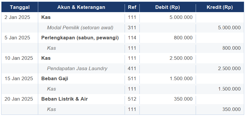 Contoh Jurnal Umum: Usaha Jasa Laundry (Januari 2025)