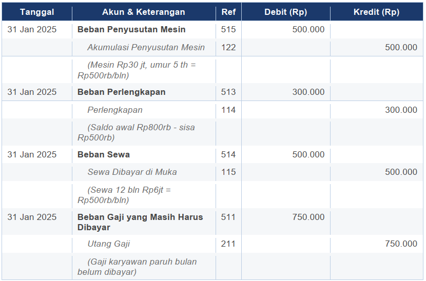 Contoh Jurnal Penyesuaian: Usaha Jasa Laundry (31 Januari 2025)