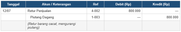 Contoh: Pelanggan mengembalikan cat tembok Rp800.000 yang cacat produksi (12 Juli)