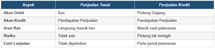 Perbandingan: Jurnal Penjualan Tunai vs Kredit
