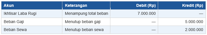 Semua akun beban di-kredit untuk dikosongkan, dan Ikhtisar Laba Rugi didebit senilai total beban.