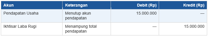 Semua akun pendapatan di-debit untuk dikosongkan, kemudian dipindahkan ke Ikhtisar Laba Rugi.