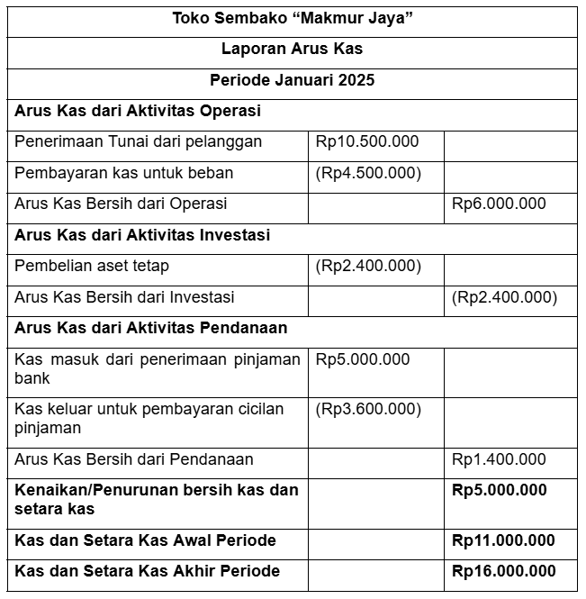 Laporan ini sangat membantu dalam memastikan likuiditas usaha tetap aman dan tidak terjebak “utang mendadak karena kas kurang”.